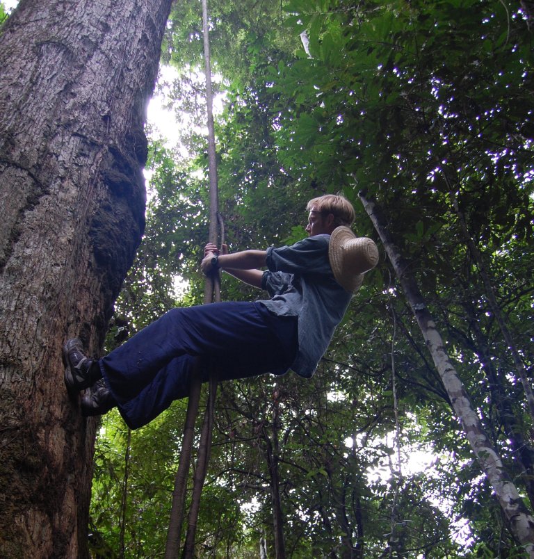 CICERO-forsker Erlend Hermansen klatrer i det brasilianske Amazonas. Foto: Tomm Eivind Bjørneseth-Hermansen